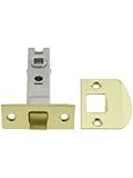 House of Antique Hardware, Inc. , Standard 2 3/8" back set tubular conversion latch with single spring. This latch is designed to fit in modern door cut outs and facilitate use of either antique or vintage reproduction door knobs with a standard 5/16" spindle. The brass plated steel face plate measures 2 1/4" tall by 1" wide and the latch housing is 7/8" tall, 5/8" wide and recesses 3" into the door. This latch is designed to fit in modern door cut outs and facilitate use of either antique or vintage reproduction door knobs with a standard 5/16" spindle. The brass plated steel face plate measures 2 1/4" tall by 1" wide and the latch housing is 7/8" tall, 5/8" wide and recesses 3" into the door. (Read More)